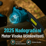 A diferencia de las sierras convencionales, no necesita gasolina. Funciona con una batería de litio de 18 V y 2000 mAh, que se carga rápidamente y permite hasta 6 horas de uso.