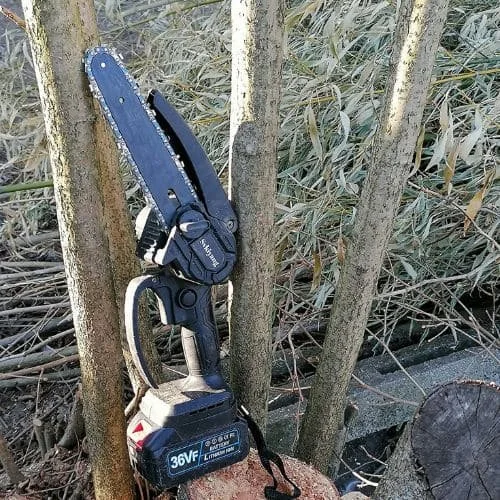 La mini motosierra está equipada con una hoja muy potente y rápida, ahorra tiempo y es ligera y fácil de manejar.